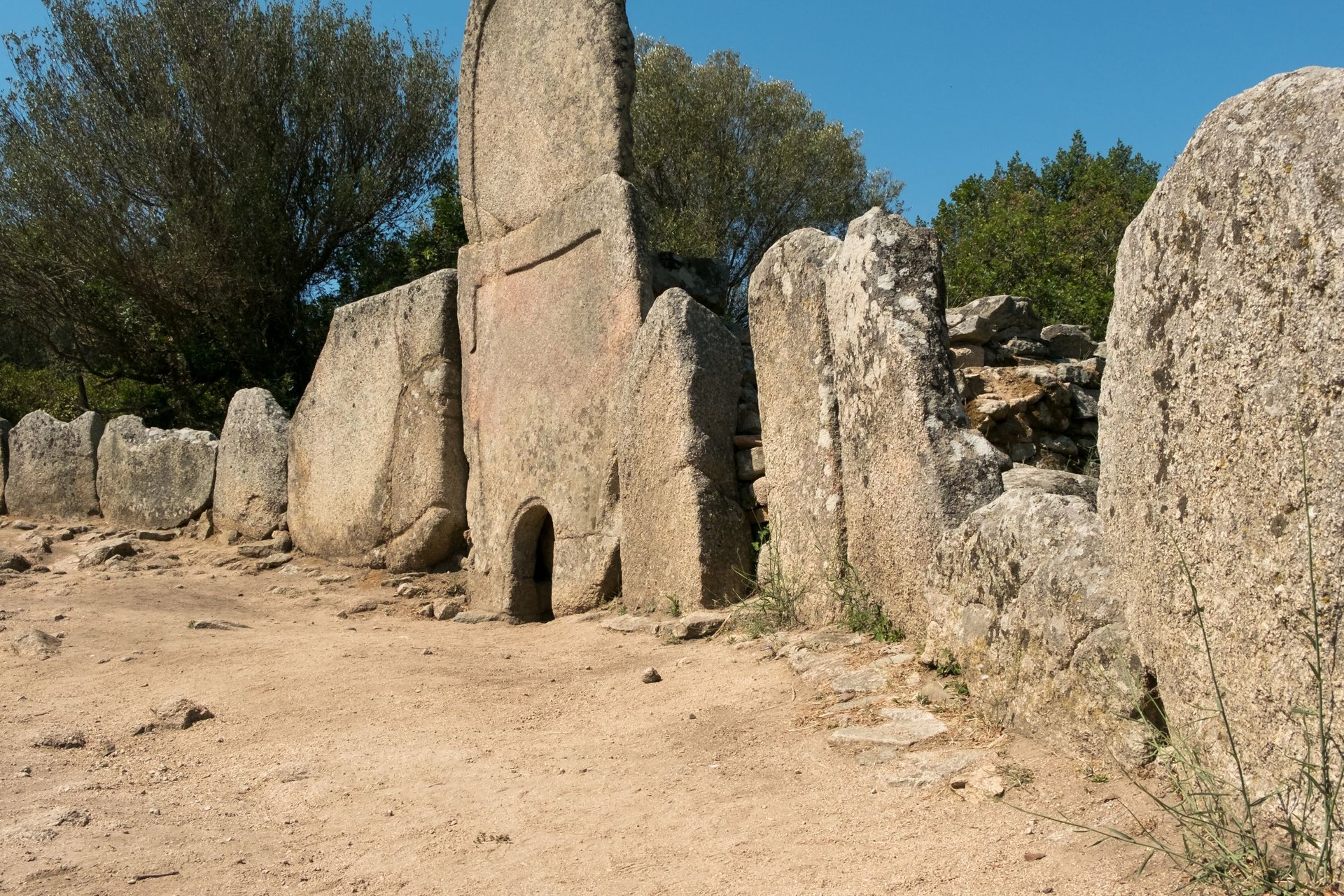 Danach besichtigen wir das Gigantengrab von Li Lolghi. Hier finden wir das unbestritten schönste und am besten erhaltene Gigantengrab von Sardinien. Die Anlage aus der älteren Bronzezeit ist ganze 27 m lang, mit einer riesigen Exedra und Stelen. Genießen wir auch die pittoreske Lage auf einem kleinen Hügel! Li Lolghi liegt nur 200m von Li Muri entfernt und ist damit ein inter essantes Beispiel für die Wohnfortdauer in diesem bedeutenden Areal.