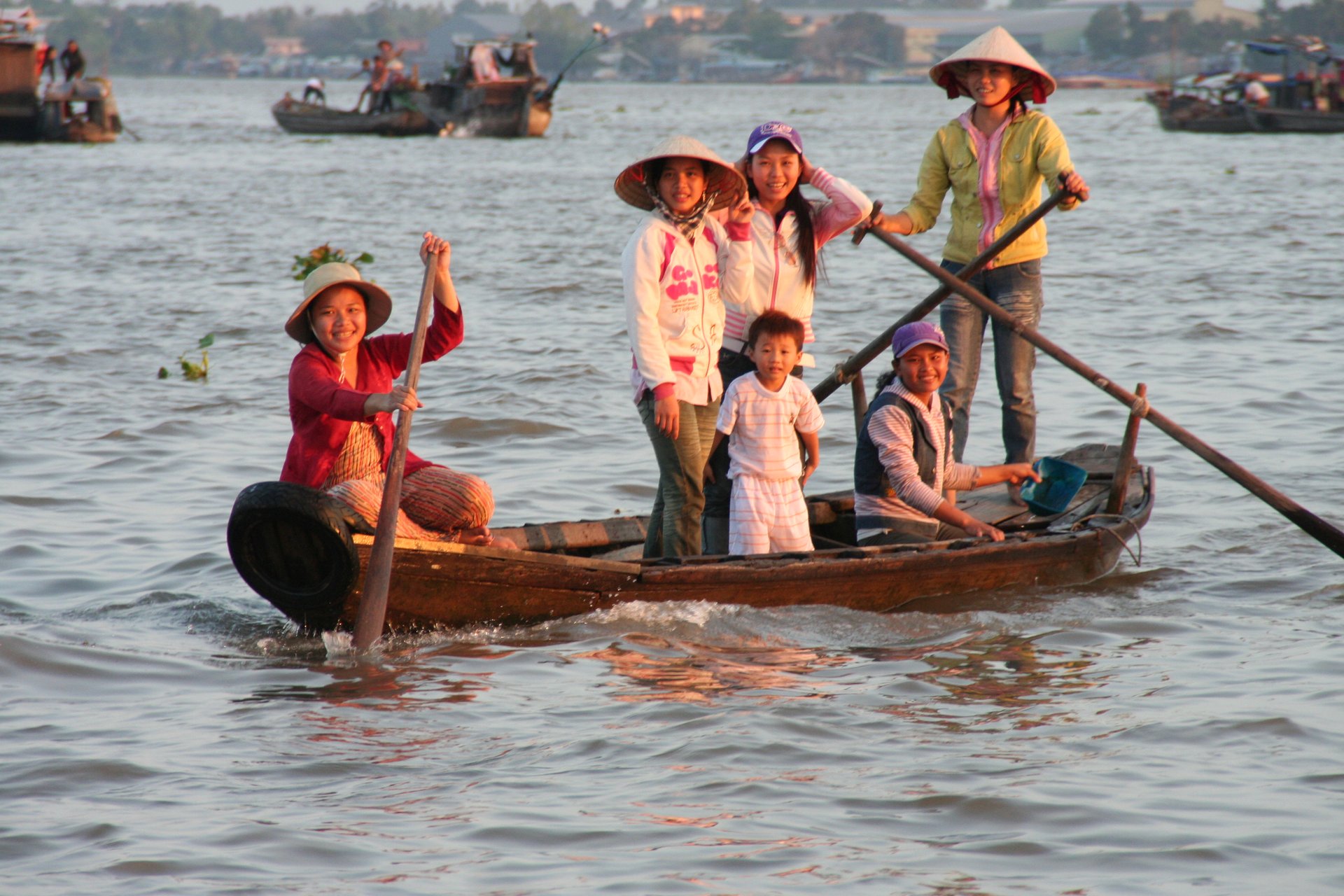 Ein weiterer ereignisreicher Tag im Mekongdelta erwartet uns! Am frühen Morgen entdecken Sie den einzigartigen schwimmenden Großmarkt von Cai Rang. Es ist einer der lebhaftesten schwimmenden Märkte im Mekong-Delta, je nach Jahreszeit mit hunderten kleinen Booten, deren Besitzer drängelnd versuchen sich Raum zu schaffen, um ihre Ladung von Waren und Früchten zu verkaufen. Hier werden große Mengen an Früchten und Gemüse gehandelt, doch es gibt immer auch kleine Boote, die vorbeikommen und Snacks, Obst und Getränke für die Händler und natürlich auch für uns Besucher anbieten.