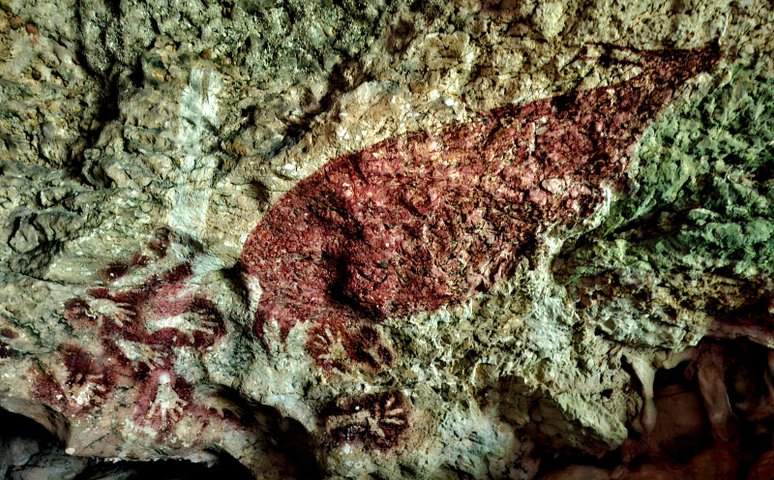 Sulawesi zählt zu den spannendsten Regionen der Welt für frühe Felsbildkunst. In den Karstlandschaften von Maros in Süd Sulawesi finden sich Malereien, die mehr als fünfzigtausend Jahre alt sind. Handnegative, Tierdarstellungen und komplexe Jagdszenen zeigen, dass symbolische Kommunikation in Südostasien ebenso früh entstand wie in Europa. Auf der Insel Muna in Südost Sulawesi begegnen uns weitere beeindruckende Felspanoramen mit Handabdrücken, Bootsmotiven und abstrakten Mustern. Die Unterschiede zu Maros verweisen auf vielfältige regionale Traditionen und geben wertvolle Einblicke in soziale und rituelle Praktiken vergangener Gemeinschaften.