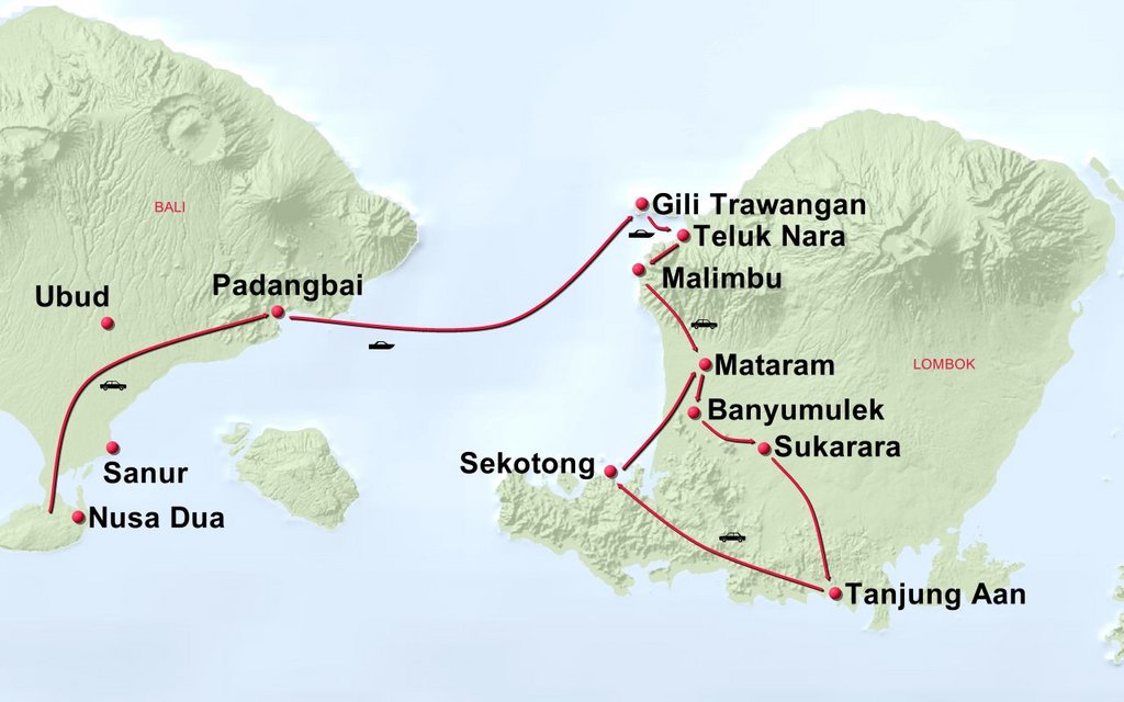Stationen der Route: Südbali Gili Trawangan Südlombok/Sekotong
