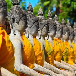 Wir entdecken die prächtigen Gebäude und Ruinen im und um den historischen Park Ayutthaya. Es geht zu Wat Si Sanphet, einer der bedeutendsten historischen Stätten Thailands und zum Wat Mahathat, einem der ältesten und wichtigsten in der Geschichte Ayutthayas. Der einzige Tempel in Ayutthaya, der von der burmesischen Armee verschont blieb, ist Wat Na Phra Meru, der eine der wertvollsten sitzenden Buddha-Statuen Thailands besitzt. Am Rückweg nach Bangkok erholen wir uns noch von den Besichtigungen auf einer dreistündige Flusskreuzfahrt mit Mittagsbuffet.