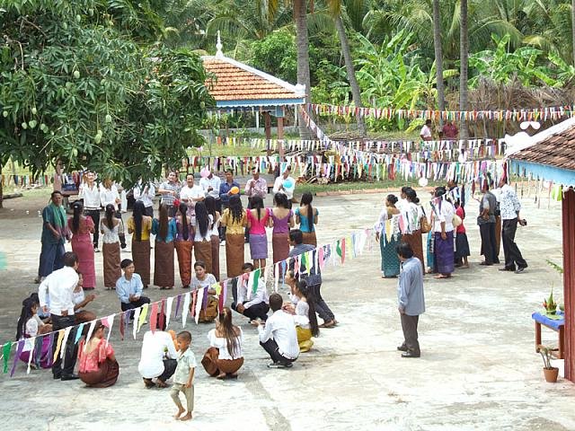 Seien Sie auf eine nasse Abkühlung vorbereitet und halten Sie den Fotoapparat bereit! Tradition wird groß geschrieben. Die Bewohner der Hauptstadt Phnom Penh feiern um den Wat Phnom, aber viele fahren in ihre Heimatdörfer zurück. Vor allem in Siem Reap sammeln sich Einheimische und Touristen und es finden ausgelassene Feiern statt. Beliebt sind die zahlreichen traditionellen Tänze. Zum Beispiel der Rom Bam Trot, der vor Unheil und Bösem schützen soll. Bei Prozessionen wird außerdem jede Menge Wasser verspritzt und die Menschen in wahren Schlachten mit Talkumpuder beworfen. Überdies finden sportliche Bewerbe und traditonelle lokal beliebte Spiele statt - Tauziehen, Sackhüpfen, ein Wurfspiel mit Schals und ein Spiel, bei dem mit Nüssen geworfen wird. Wettkämpfe in Kampfsportarten ziehen die Besucher an und Märkte gehören natürlich wie in ganz Asien dazu.